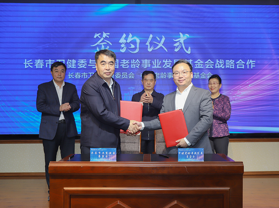 随后,王维学与夏超就长春市卫健委与中国老龄事业发展基金会签订战略合作框架协议。